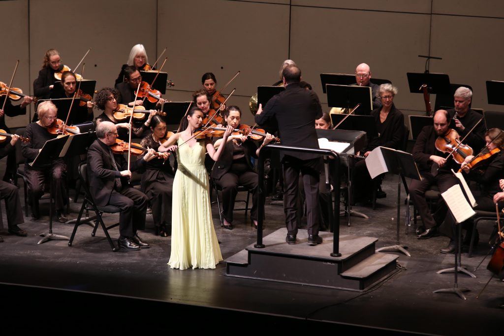 Next was Mozart’s “Violin Concerto No. 3 in G Major, K. 216,” featuring Khuong-Huu as the soloist. The rest of the Philharmonic took the stage and woodwinds and brass began to tune. Khuong-Huu waltzed towards center stage in a floor-length, striking yellow dress and was met with thunderous applause.