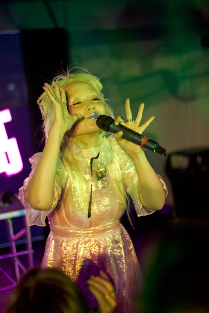 LustSickPuppy’s intense confidence was appreciated by the crowd as they cheered along to her statement. On the other hand, Gao had a more playful energy to her set. She entered the stage in a glittery dress that made her glimmer while she jumped and twirled to her own music. She even introduced herself with an air of humor by DJing “SpongeBob SquarePants” and Britney Spears songs.