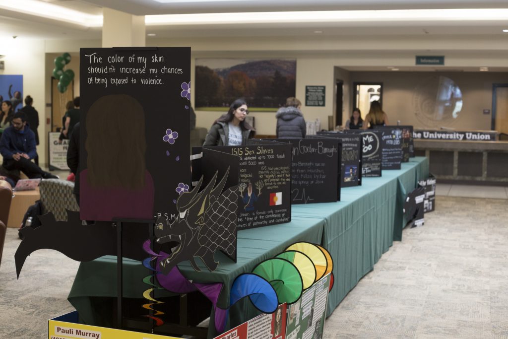 The panels consisted of black foam boards which featured a woman or a group of women of color to honor those who have died due to interpersonal violence. They included pictures of victims, statistics about missing and murdered women and powerful phrases and quotes written in metallic marker.