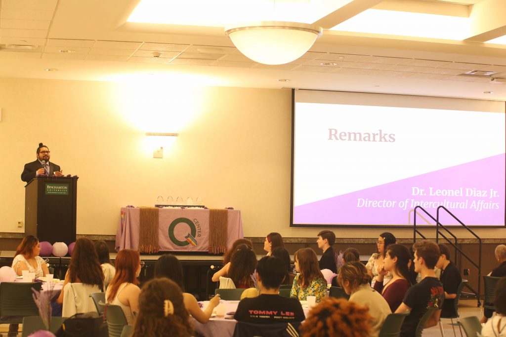 Nick Martin, associate director of the Q Center; Leonel Diaz Jr., the center’s director for intercultural affairs; and Matthew Winston Jr., executive director for alumni engagement, gave opening remarks.