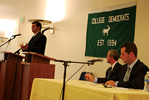 “College Democrats decided to host a debate … because there was a definite need for a forum to be held between both candidates, to showcase both of their platforms and viewpoints,” said Laura Chaath, president of the Binghamton College Democrats.