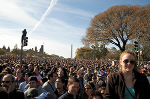 Three buses of Binghamton University students joined more than 200,000 people at the National Mall in Washington, D.C. on Saturday to see Jon Stewart and Stephen Colbert in their Rally to Restore Sanity and/or Fear.