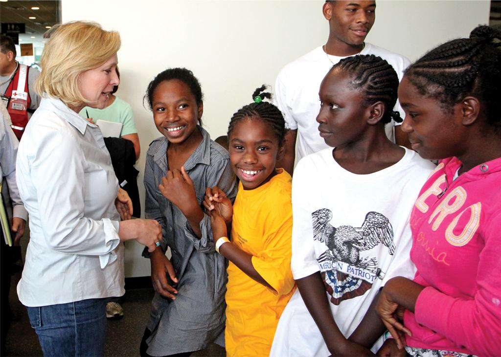 Gillibrand led the charge, circling the floor of the Events Center, speaking with evacuees including a number of young children.