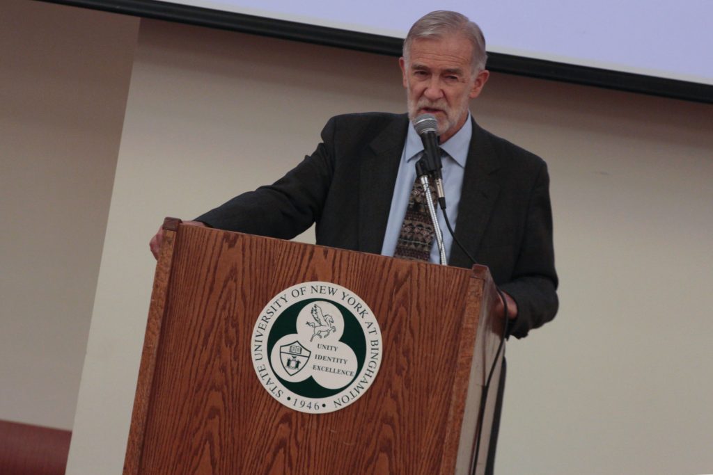 Judy Homanich is a Binghamton resident and a member of Broome County Peace Action who attended the event. She said she was proud to have McGovern come and talk to the students and community members because he offers another viewpoint on the events of 9/11.