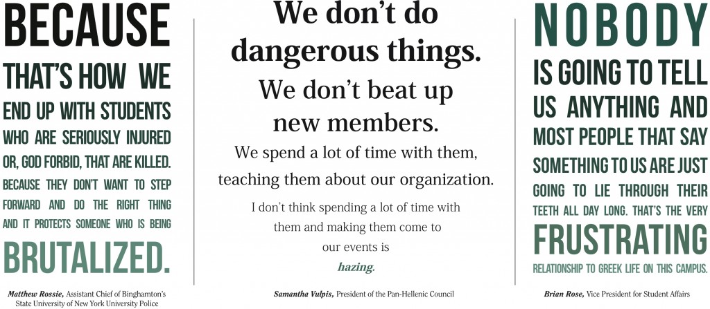 Zach Stein, president of the Inter-Fraternity Council and Alpha Chi Rho, a social fraternity, said that hazing is a problem at Binghamton. However, while he said that he has heard of “bad things” happening this year, he does not believe this semester has been any worse than usual.