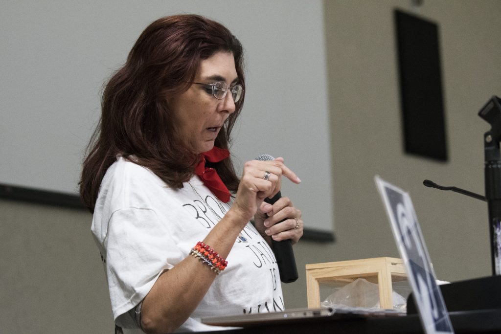 Another speaker, Jackie Card Wood, brought up a box containing the ashes of her brother, Robert Card, who died in January while in custody of the Broome County Jail.