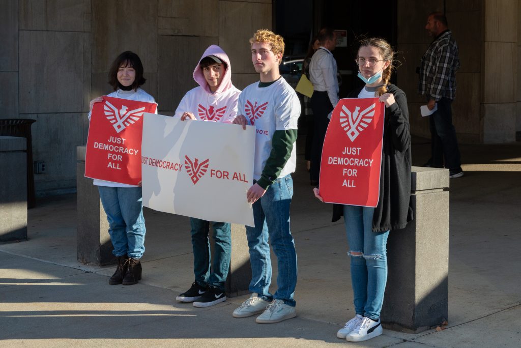 “As a part of these actions there’s a certain dichotomy to it where we are hosting actions outside of local elections administration offices that we feel we need to hold accountable, [where] they could probably do better to increase access of the ballot to people, but also hosting actions outside of offices within which the local administrators have done a great job thus far, with regard to working with young people on their counties or in the region to make it easier for them to vote,” Cushing said.