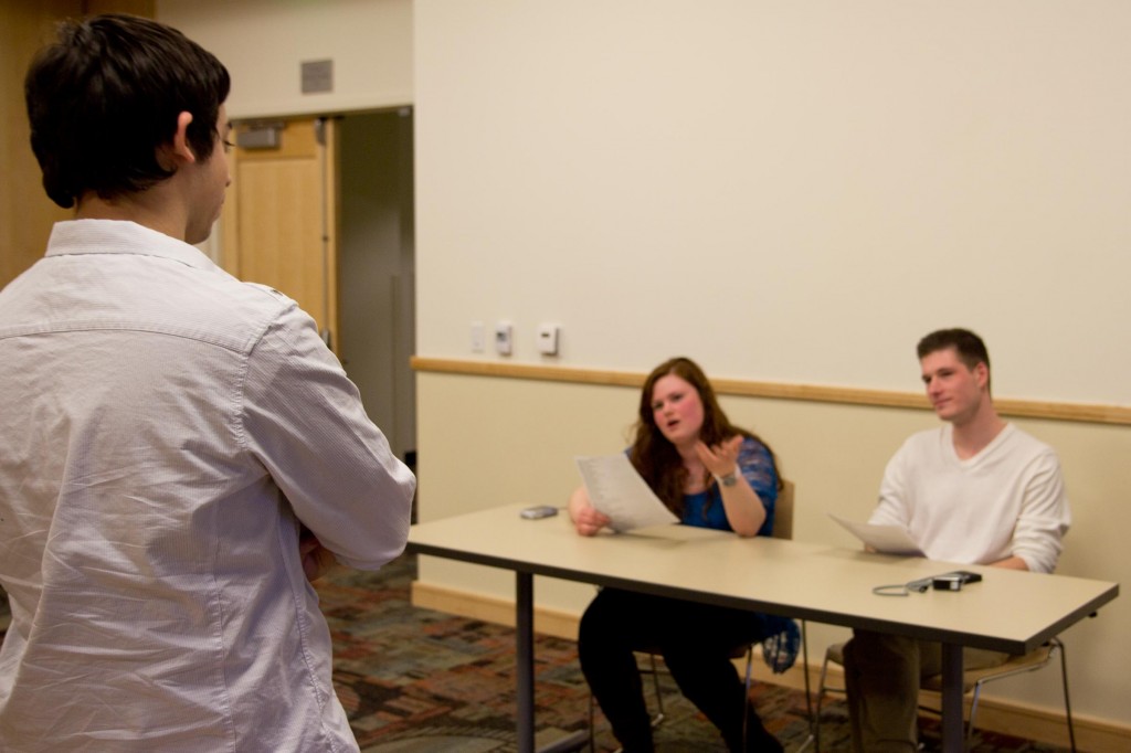 Kendall Loh/Assistant Photo Editor Salvatore Rametta, a senior majoring in integrative neuroscience, receives his word from the judges at the first annual Newing College Spelling Bee. Heather Cohen, a junior majoring in psychology, won the event, and took home a $15 iTunes giftcard.