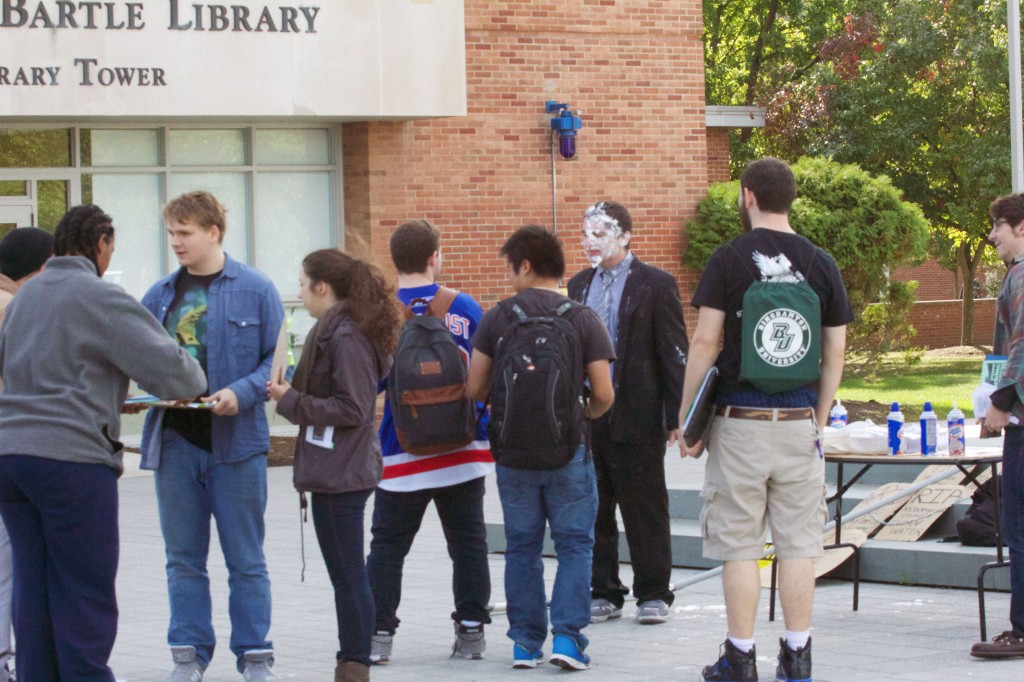 A member of the E-Board was also dressed in a suit to represent a fracking executive and students were allowed to throw pies at him after calling the governor, which according to Sam Clark — an intern with NYPIRG — over 50 people did.