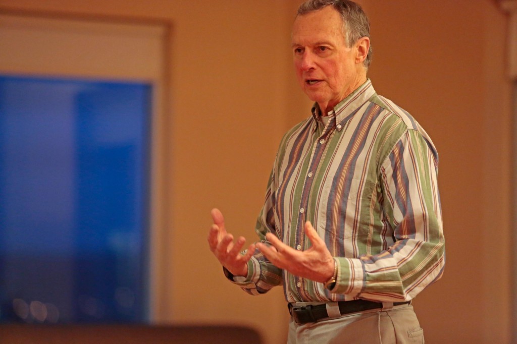 Though the event was initially advertised as an activity to help teach people to self-hypnotize as a way to relieve stress, the professor was unable to get around to it as his story and demonstration took up the allotted time.