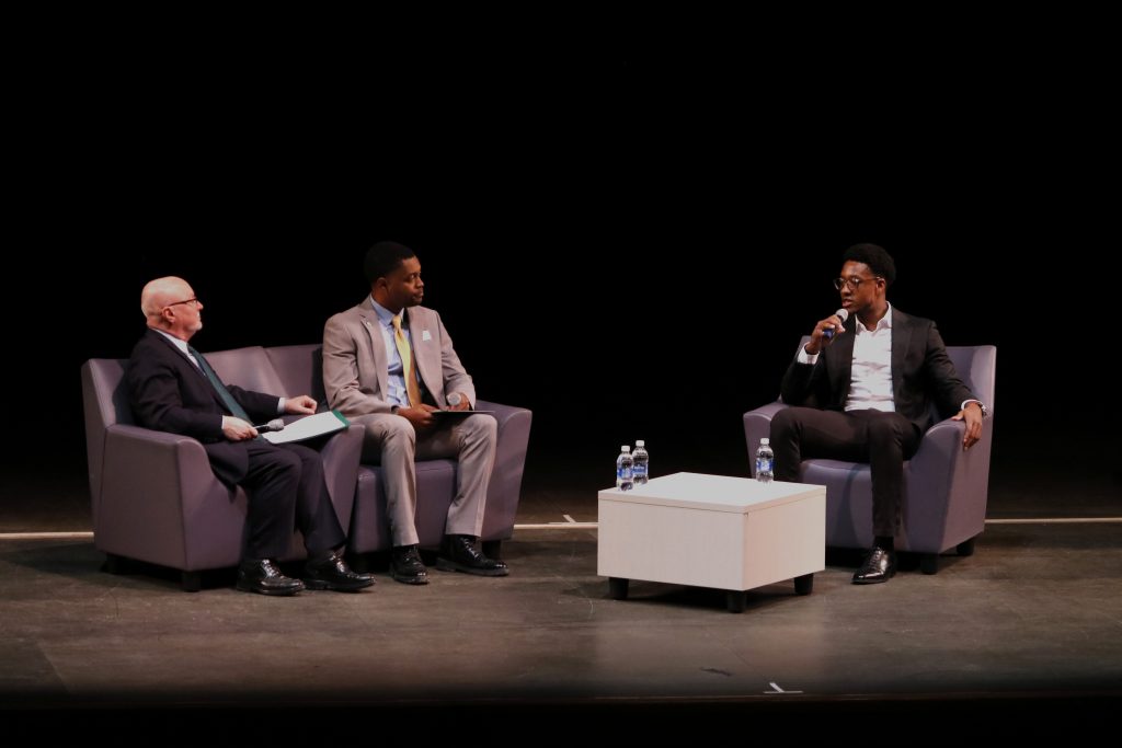 Adamolekun also shared the importance of work ethic and its development, explaining that being an athlete gave him skills that transferred to his professional career. Reeves, who graduated from the University at Albany, and Adamolekun both played for their college’s respective football teams and shared a few lighthearted moments on stage about the sport.