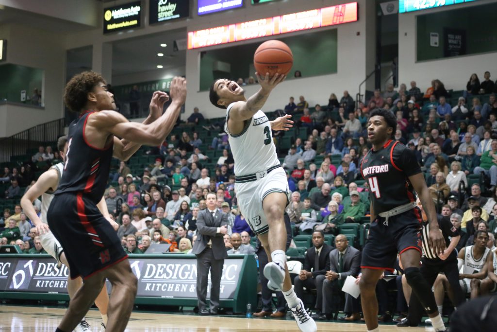 The Bearcats overwhelmed Hartford to start the match with quick, aggressive transition on the offensive end, forcing the Hawks into difficult shots. Hartford’s main scoring threats of graduate student guard Malik Ellison, freshman forward Moses Flowers and sophomore forward Hunter Marks rarely found opportunities against the Binghamton defense. However, Flowers found his rhythm late in the first half and continued to produce into the second, finishing with 15 points.