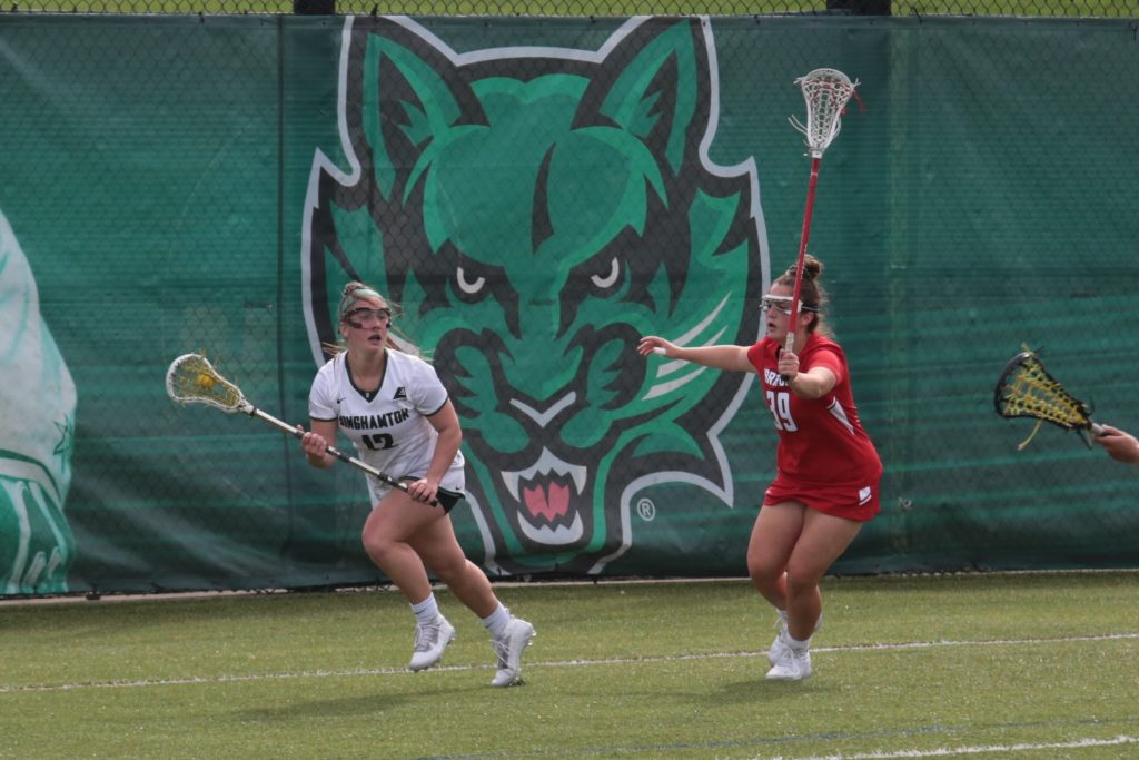 Coming off a two-week hiatus, the Binghamton women’s lacrosse team tallied its second victory of the season with a 20-12 win over Hartford on Saturday. The Bearcats (2-3, 2-3 America East) secured a sizable lead with their first half play, going into halftime with a 13-5 lead over the Hawks (0-6, 0-6 AE). Senior attack Paige Volkmann led the Bearcats with a career-high 10 points, setting the school record for most points in a game.