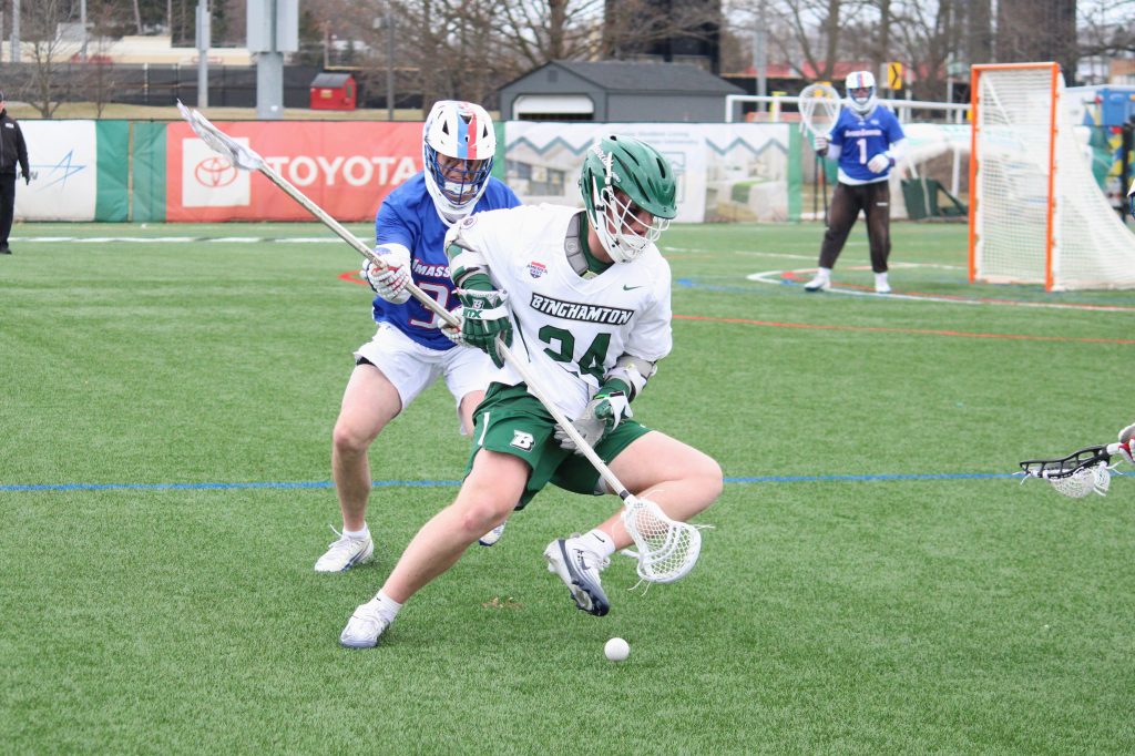 Kicking off America East play, the Binghamton men’s lacrosse team earned a 16-9 victory over visitors UMass Lowell on Saturday afternoon. Although the Bearcats trailed 3-2 in the first period, a decisive 6-0 run that stretched into the third quarter gave the Bearcats a lead they did not relinquish.