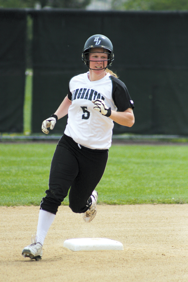 The squad managed to hit six home runs during the weekend-long campaign, with an offense powered by sophomore outfielder Jessica Phillips, who homered twice and leads the Bearcats with a .545 batting average. Sophomore outfielder Shannon Kane, who is second on the team in batting average, tied the highest single-game total in hits by a Binghamton player since senior caption Deannie Plemon last year, going a perfect 4-for-4 with one run scored in the Bearcats’ 2-0 victory over Elon University.
