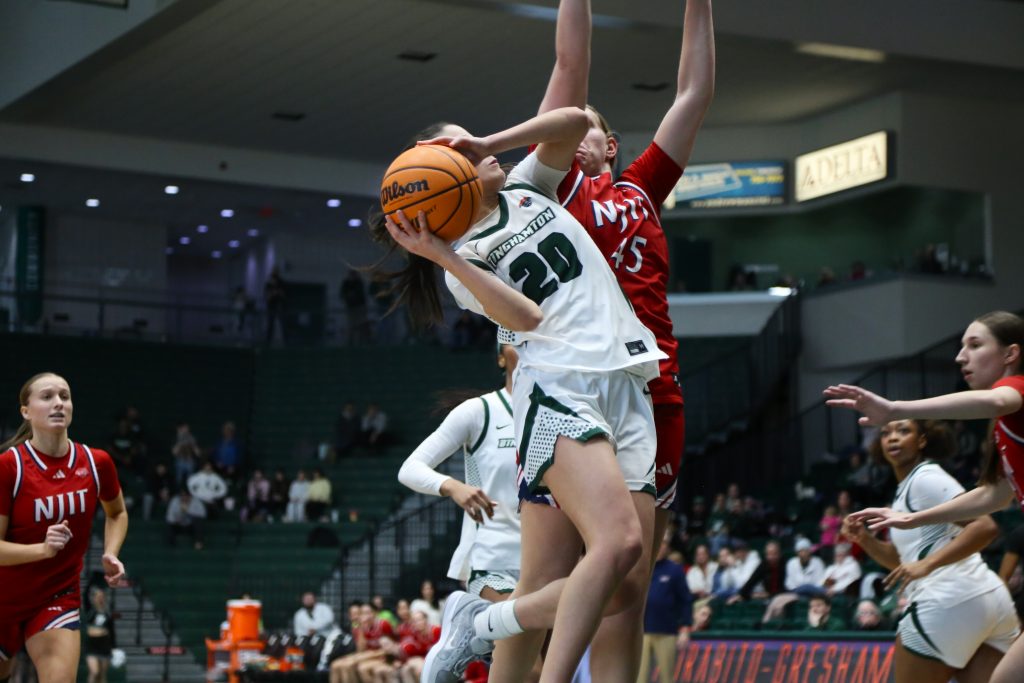 Following a 73-59 victory over UMBC on Thursday, the Binghamton women’s basketball team earned its fifth consecutive victory with a 72-67 win over NJIT on Saturday afternoon. After trailing by 10 at the half, the Bearcats outscored NJIT by 15 in the second half. They are now solely in first in the America East with a 9-1 record, continuing their best start in program history.